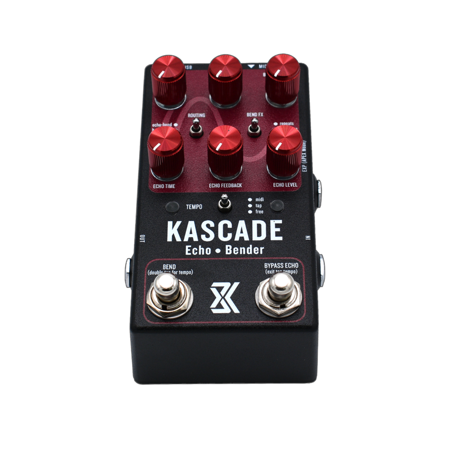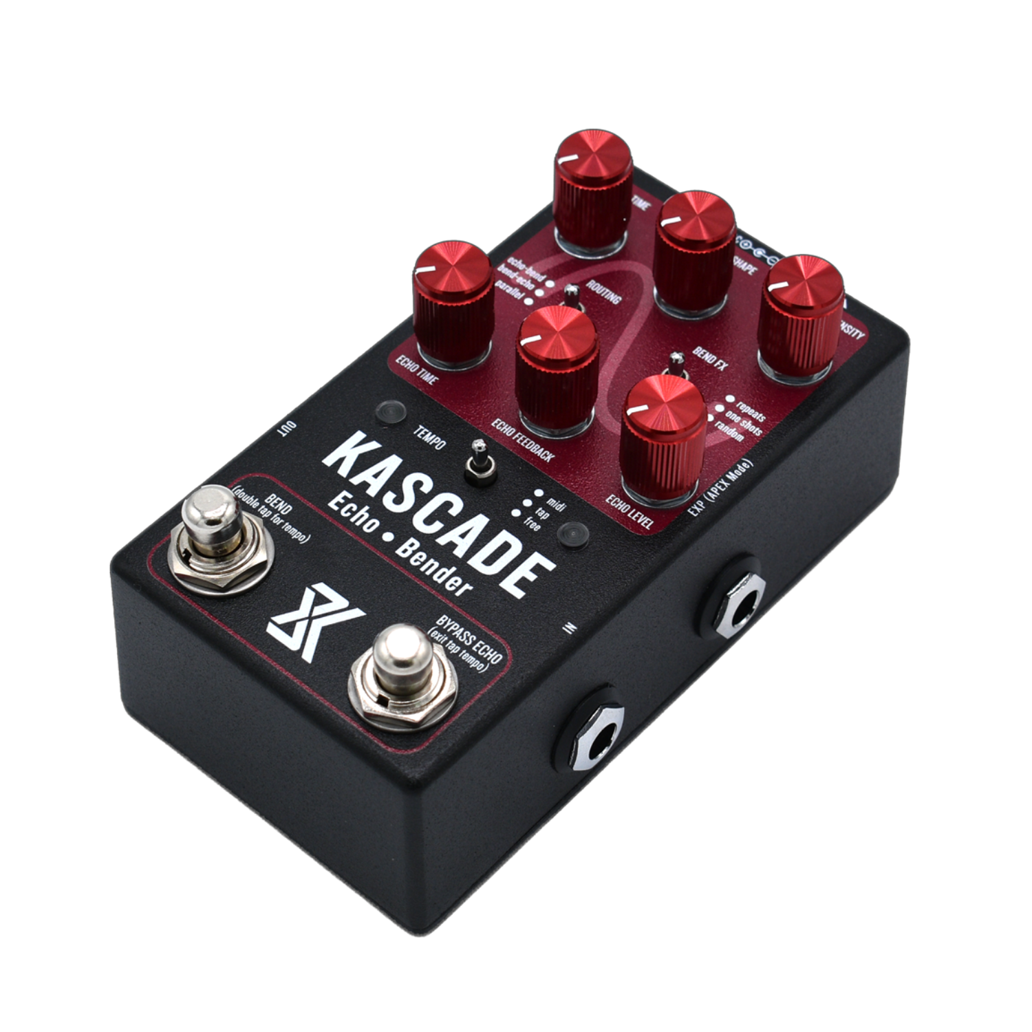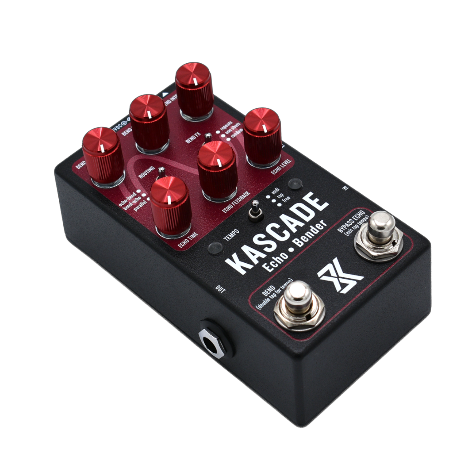Kascade fuses a warm analog-style echo with a unique pitch-bending engine. Use its simple three-knob delay section for short, always-on ambience—or trigger whammy-bar bends from subtle dips to plunges, all without throwing your guitar out of tune. You can push the Bender harder to get more dramatic effects like "boombox-running-out-of-battery" or "vinyl stop". Blend to taste for widening, doubling, or complete sonic collapse.