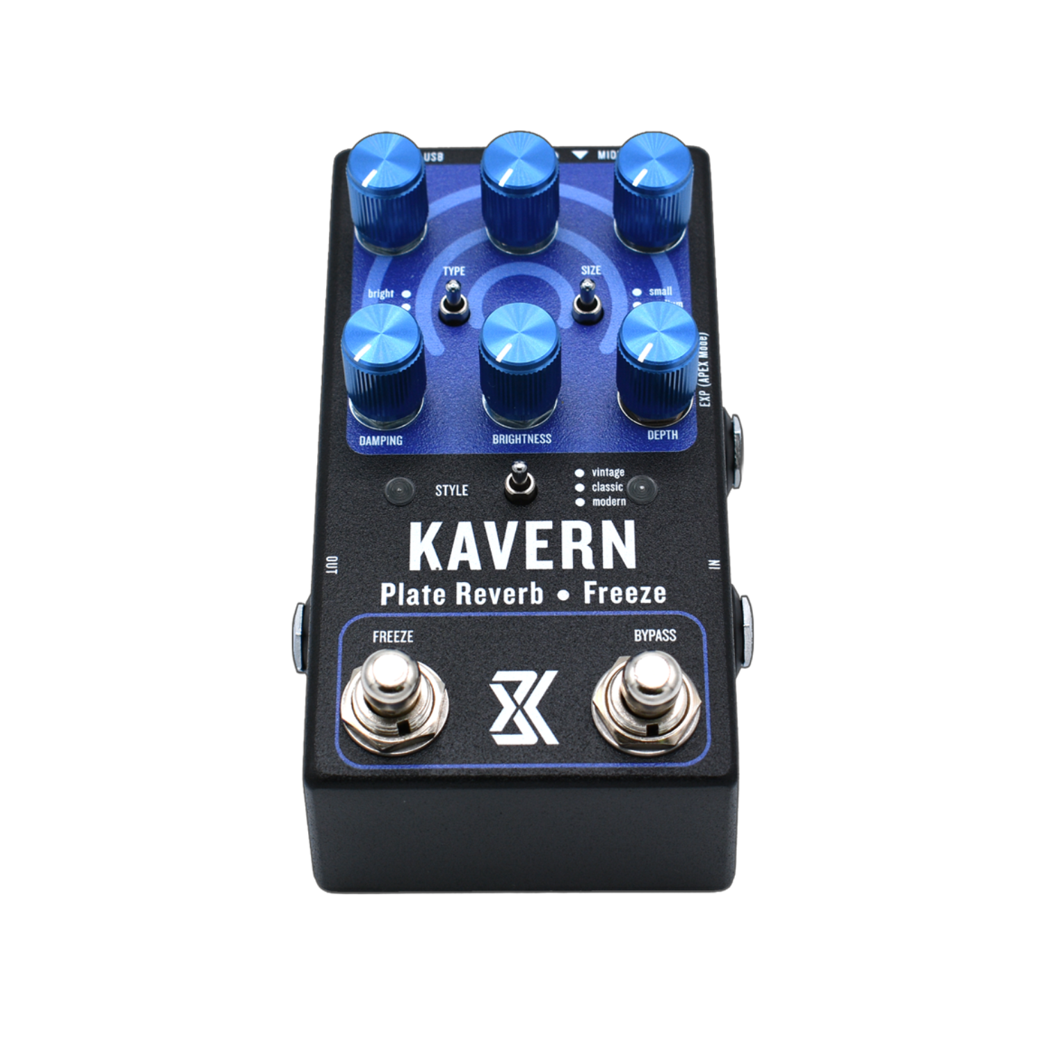 Nothing sounds quite like a plate reverb, and no two sound alike. Kavern captures the character of the greatest plate reverbs ever made—lush, dimensional, and infinitely adjustable. Dial in intimate rooms or massive halls, each with the shimmer and density that only plates can produce. Designed as a studio-quality stereo effect for your live or recording chain, Kavern adds both polish and presence to your sound. The Freeze function turns reverb into an instrument, holding tones in shimmering suspension for ethereal drones or sustained chords.